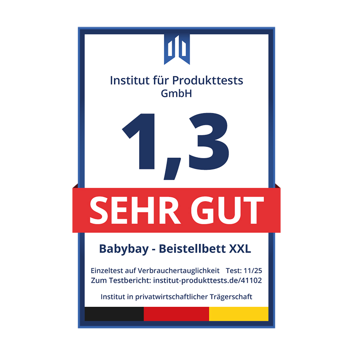 Das babybay® Boxspring XXL weiß von tobi ist die perfekte Lösung für alle hohen Betten. Aufgrund der hohen Bauweise und der patenten stufenlosen Höhenverstellung lässt sich die Liegefläche exakt an hohe und rahmenlose Boxspring-Betten anpassen – ohne Stufe, ohne Spalt. Immer bündig auf einer Ebene mit Mamas Bett – das A und O eines Beistellbetts. Gerade in den ersten Monaten ist der enge Kontakt zwischen dir und deinem Baby sehr wichtig, mit der extra großen XXL Liegefläche, kannst du die Nähe zu deinem kleinen Liebling noch länger genießen. babybay® Boxspring XXL ist daher auch ideal für Zwillinge geeignet. Mit der speziellen Gurtbefestigung lässt es sich kinderleicht, sicher und werkzeuglos an jedem Boxspringbett befestigen und wieder lösen. Die Lacke sind schadstofffrei und entsprechen den Normen EN71.3. Das Buchenholz stammt aus nachhaltig bewirtschafteten, heimischen Wäldern. Es wird komplett aus natürlichem, antibakteriellem und antistatischem Buchenvollholz gefertigt - ohne Kompromisse, ohne Holzersatzstoffe.