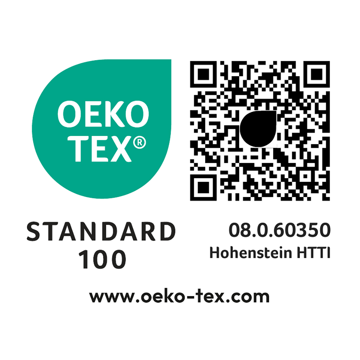 - Oeko-Tex Standard 100 zertifiziert (08.0.60350 HOHENSTEIN HTTI)