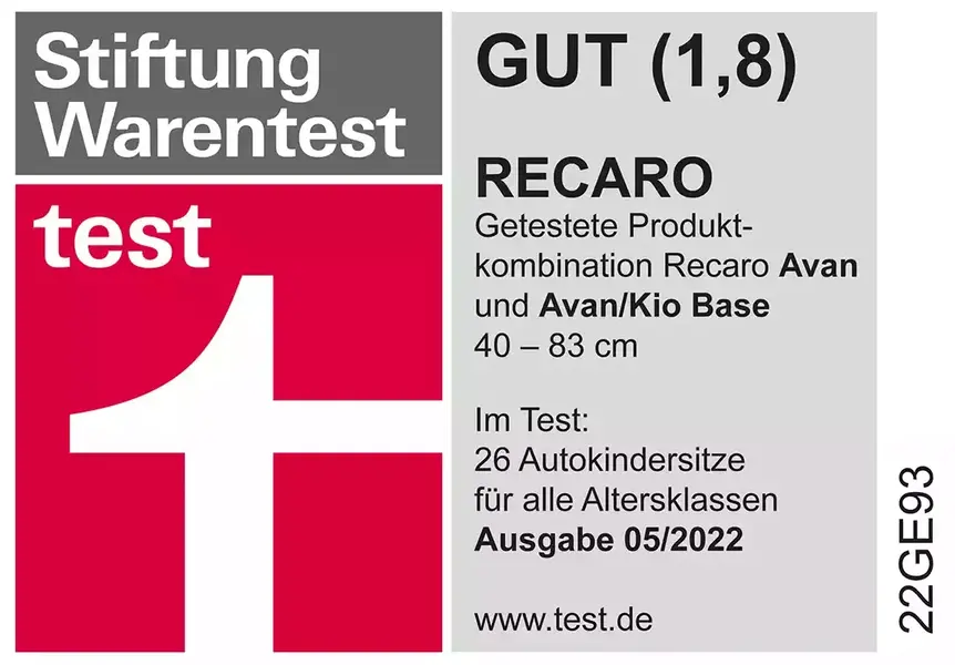 - Note gut (1,8) bei Stiftung Warentest 05/2022 (Recaro Avan und Avan/Kio Base)
