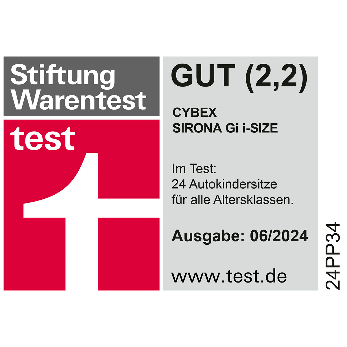 - Note gut (2,2) Cybex Sirona Gi i-Size bei Stiftung Warentest 06/2024